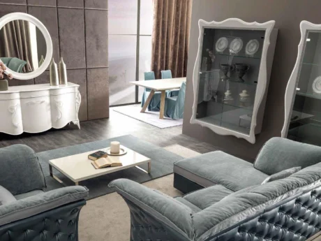 For those seeking a royal ambiance, our classic upholstered furniture collection features intricate carvings, rich detailing, and noble fabrics. Noble hues such as deep burgundy, royal blue, and sophisticated greys amplify the allure of these timeless pieces.