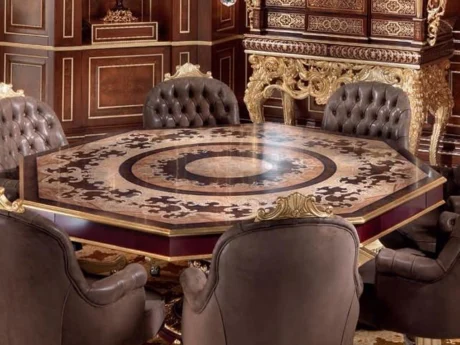 Luxury is defined not only by design but also by the quality of materials used. Our classic tables feature the finest hardwoods, from rich mahogany and walnut to elegant oak and cherry, carefully selected for their endurance and stunning natural patterns. Complementing these woods are exquisite marble, glass, and metal details that enhance their timeless appeal.
