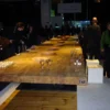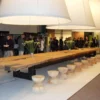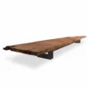 The table features a sleek wood top made from luxurious Kauri wood, known for its unique beauty and durability. The base of the table is constructed from metal segments, expertly welded together to create a sturdy and stylish foundation for the table.