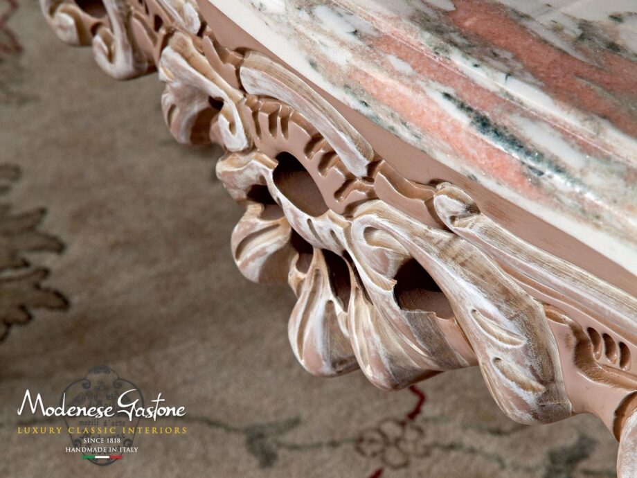 The Casanova collection draws inspiration from the classical Baroque era of the XVIII century, bringing a touch of old-world charm to modern interiors. With its low height and timeless design, this coffee table is the perfect addition to any living space. The rich marble color adds a touch of luxury, while the intricate detailing on the legs and edges showcases the artistry of Modenese Gastone.