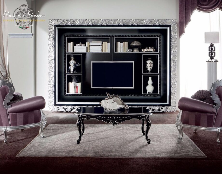 Introducing the stunning 13129 bookcase with TV stand from the Bella Vita collection by Modenese Gastone. This classic Italian design brings the elegance of the past into modern living spaces. Crafted with intricate details and luxurious materials, the Bella Vita collection reimagines baroque elements in a contemporary way.