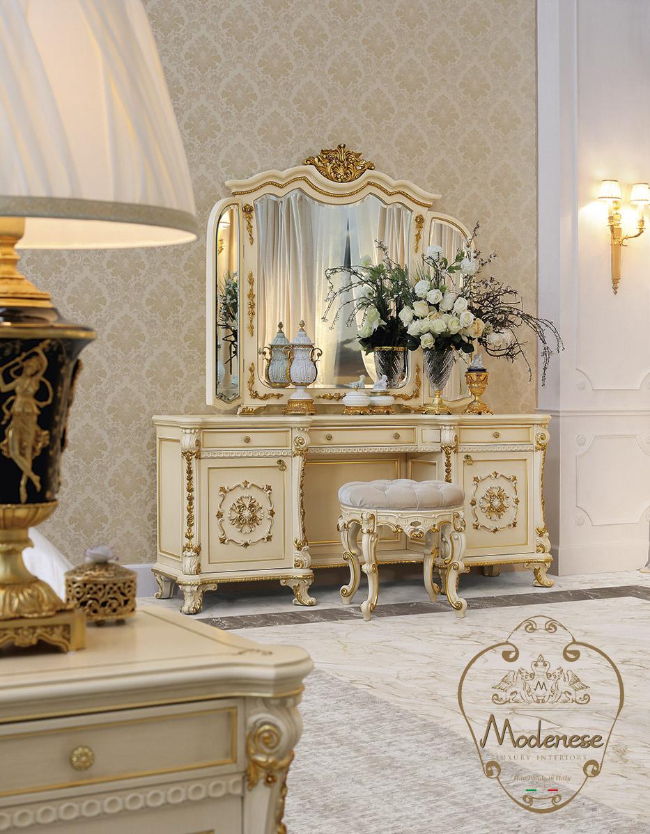 Elevate your bedroom with the luxurious 14221 dressing table from our Deluxe collection. Crafted with exquisite attention to detail in Italy, this classic piece exudes elegance and sophistication. Made from high-quality wood, this dressing table features two entryways and three spacious drawers, providing ample storage for your essentials.