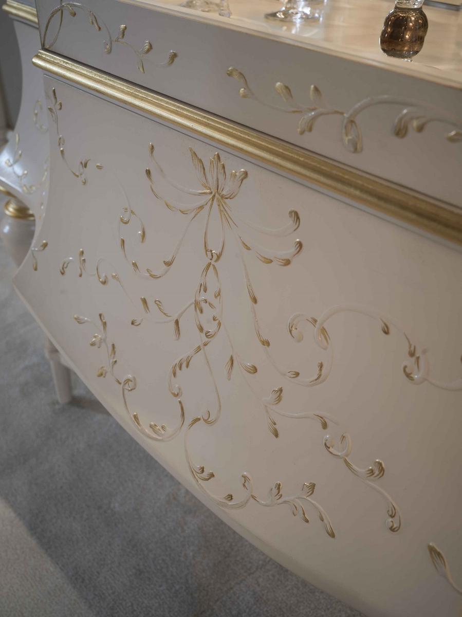What sets the 1433 showcase apart from others is its subtle detailing. Taking inspiration from our 1430 collection, this piece features a single door, brush decorated with a slightly glazing ivory chalk element. The gold leaf grazed decorations add a touch of luxury, catching the eye and elevating the overall aesthetics of the showcase.