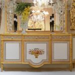 Its intricate carvings are an ode to the craftsmanship of the bygone era. The antique decapè finish, adorned with hues of gold and bronze, adds a layer of opulence, making this table the absolute focal point of your living room. Its rectangular shape enhances its functionality, providing ample space for hosting your lavish dinner parties.