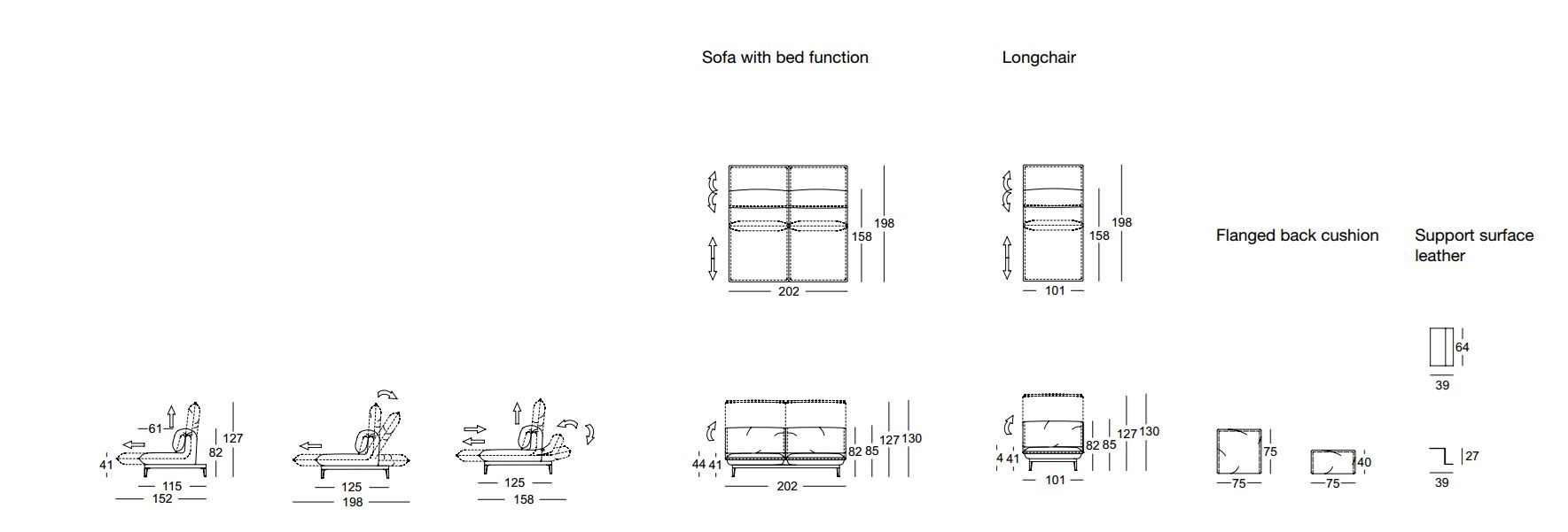 The Rolf Benz NOVA chaise longue is designed to adapt to your every need. Choose from fine inclining feet or a sleek metal frame in silver, textured chrome, or black to match your style. Whether placed freestanding in a room or against a wall, this versatile piece offers endless possibilities. Simply fold the back up for a high backrest or adjust it to a reclining position for maximum relaxation. The head section can also be customized to your liking for the perfect lounging experience.