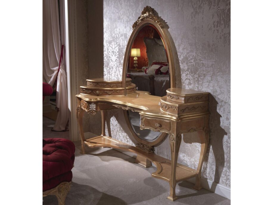 Crafted from the finest wood, the 3680 Collection dressing table is a statement piece that brings a touch of grandeur to your interior space. The table features an intricately carved wooden top, showcasing our artisans’ high-quality expertise and years of experience. The table is completed with a central mirror, providing functionality while enhancing the beauty of the piece.