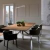 Elevate your dining experience with the sleek and stylish 4×4 extendable dining table by renowned designer Giulio Manzoni. Crafted in Italy, this modern masterpiece features a striking metal base that exudes contemporary elegance, while the wooden top adds a touch of warmth and sophistication to any living room.