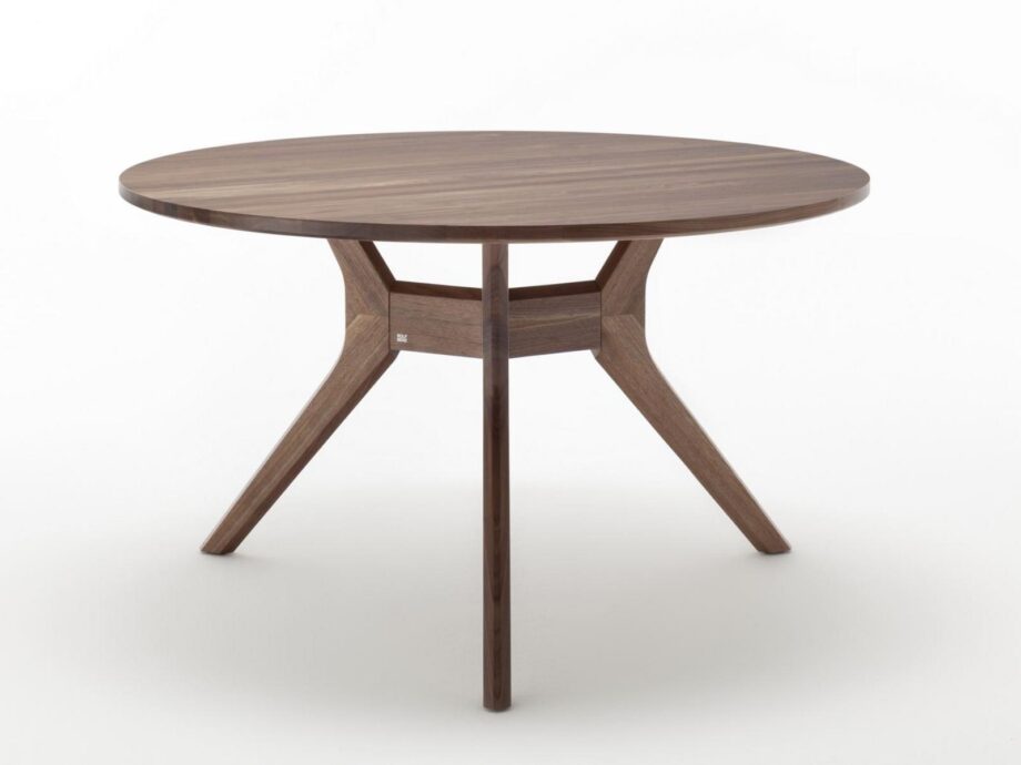 The table top is made from solid wood, available in your choice of oak or American walnut, both finished with a smooth oil for a luxurious look and feel. The frame is crafted from solid wood and painted in a rich, dark finish to complement the table top seamlessly. Whether you choose the round or oval version, the Rolf Benz 965 table is sure to make a statement in your home.