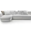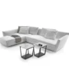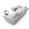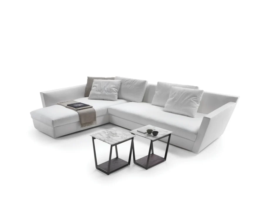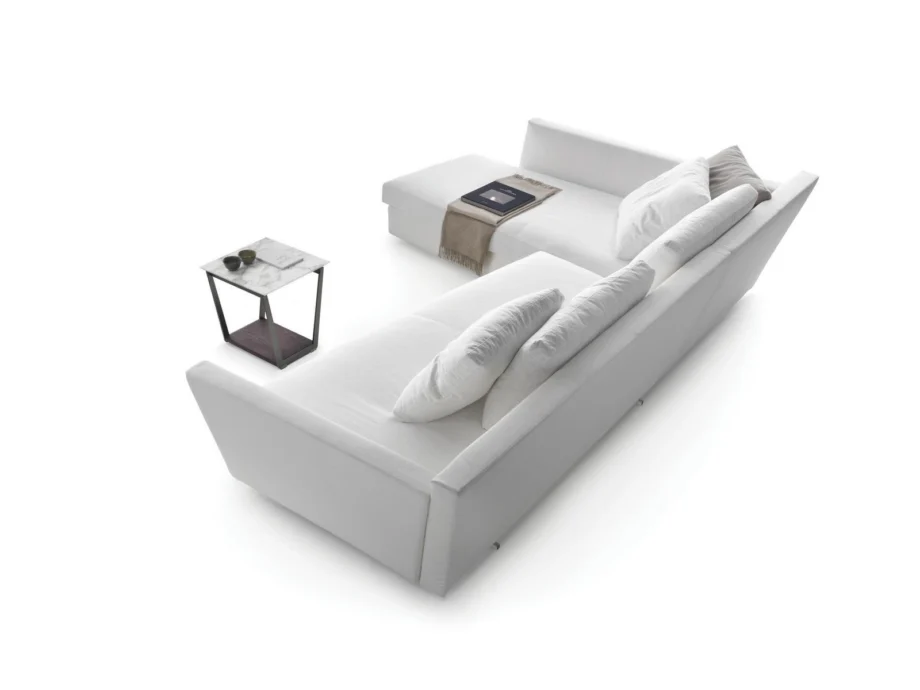 The Adagio sofa is upholstered in luxurious fabric with a removable cover for easy maintenance, ensuring both comfort and practicality. Its unique shape, with a corner and sectional design, creates a striking visual impact in any room, while the integrated chaise longue adds a touch of versatility and luxury. The high seat back and soft trapezoidal seat cushion provide optimal comfort and support, making it ideal for lounging or entertaining guests in style.