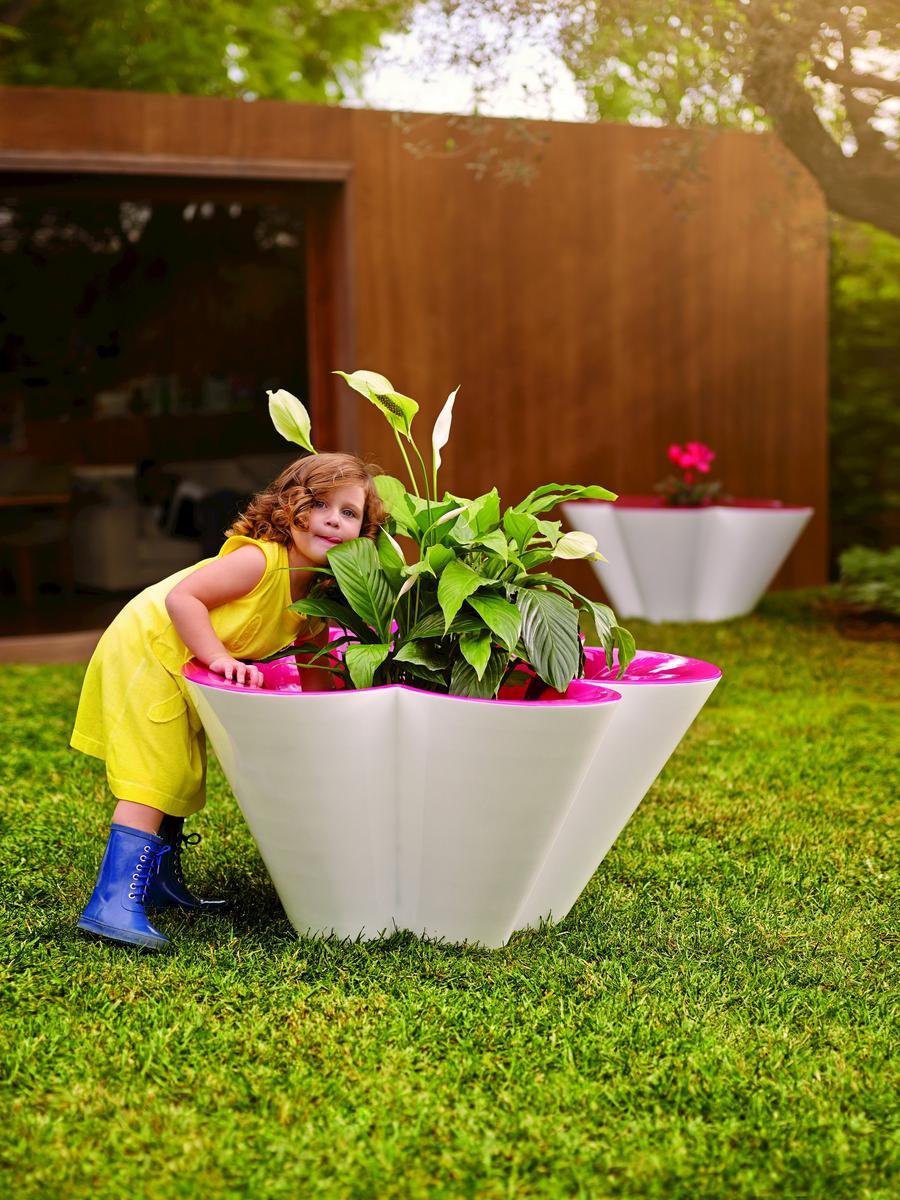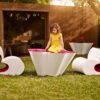 The Agatha side table is a true statement piece, with its bold and eye-catching design. The table features a flower-inspired base with large petals, adding a touch of elegance to your outdoor decor. Pair it with the heart-shaped stools for a complete set that will delight both children and adults alike.