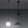 The cone-shaped diffuser in metal not only provides direct light but also creates a warm and inviting ambiance in your space. The Aggregato Saliscendi Sfera is designed to accommodate halogen light bulbs, ensuring optimal lighting for any setting.