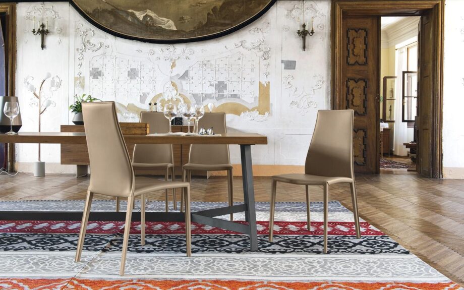 The Aida Plus chair is more than just a seating arrangement. It is a testament to the harmonious blend of style and comfort. Crafted meticulously, this chair boasts a high backrest and a slender line, embodying a minimalist and elegant design. Its structure, fully covered in ‘Vero Cuoio,’ a genuine thick tanned leather, radiates an opulent vibe, enhancing its refined silhouette to the utmost.