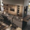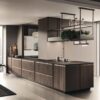 Available in Castagno Spazzolato in four shades and 20 Sand lacquer colors, this kitchen collection exudes sophistication and modernity. The slim solid wood frame with a built-in handle adds a touch of refinement to the design, while the practical features like the MOVE sliding worktop and AkB_Case separating element enhance the kitchen’s functionality.