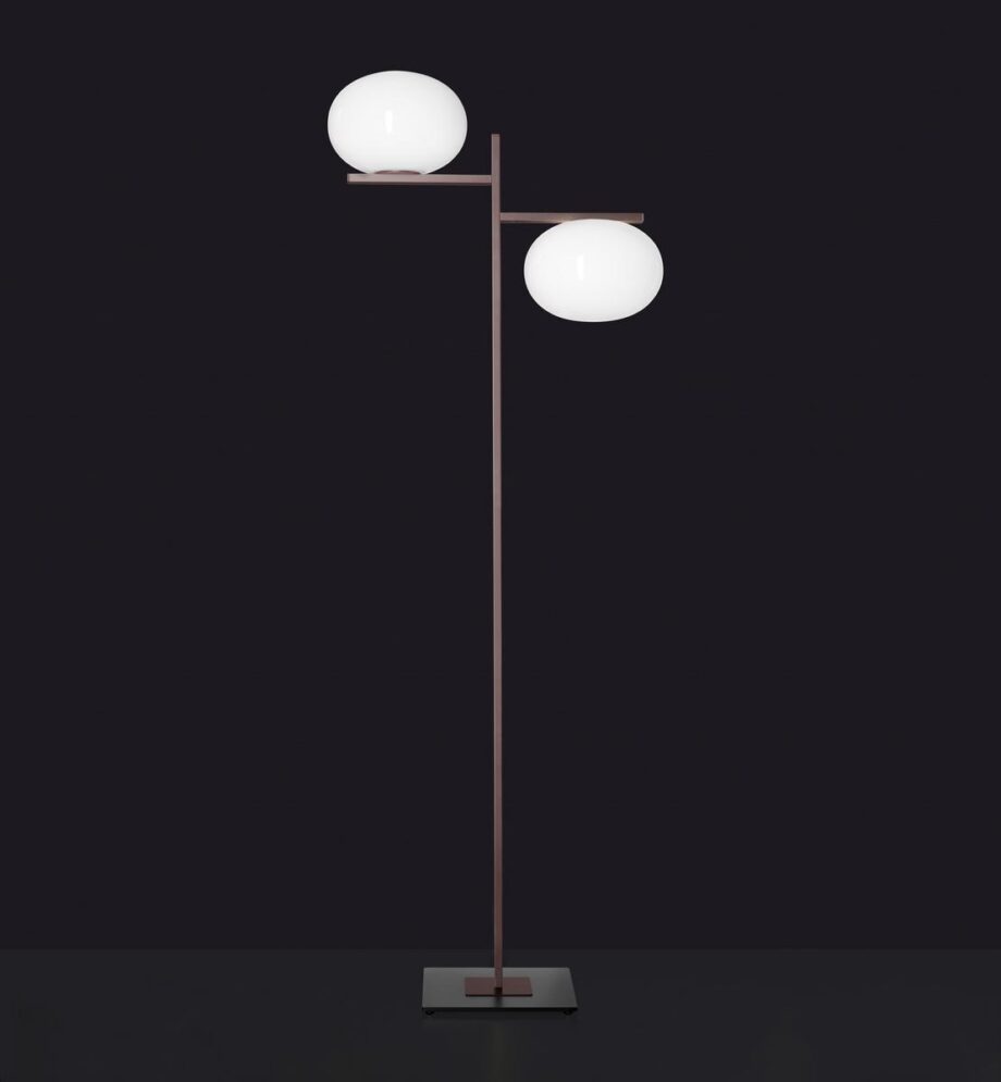 Introducing the Alba – 383 floor lamp, a stunning addition to any modern interior design scheme. This elegant lamp, designed by Mariana Pellegrino Soto, combines the timeless allure of brass with the delicate beauty of opal glass to create a truly breathtaking piece.