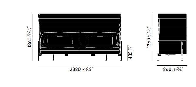 The Alcove Highback Sofa is upholstered in a luxurious fabric with a removable cover for easy maintenance. The soft ‘Lounge’ upholstery option is perfect for relaxed lounging, while the firmer ‘Work’ upholstery is ideal for a more focused sitting experience. The structural frame features cylindrical steel legs, giving the sofa a contemporary look.