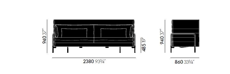 With its sleek lines and contemporary style, the Alcove sofa is ideal for modern interiors. The upholstery options offer versatility, with a choice between a relaxed lounge upholstery or a firmer work upholstery, depending on your seating preferences. The structural frame is made of rounded steel for durability, while the polyurethane foam and polyester fiber padding ensure maximum comfort.