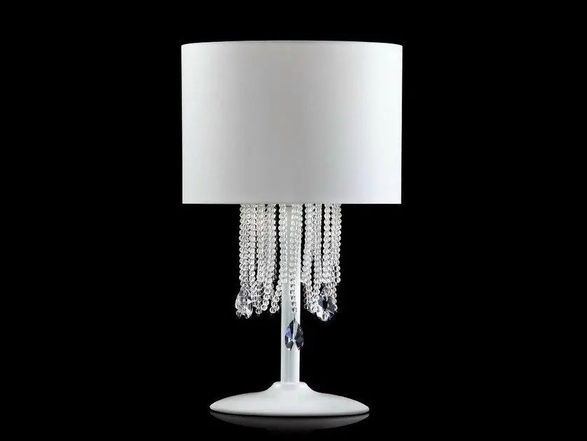 Crafted from a combination of metal and brass parts, the Alice table lamps feature a stunning lacquered white finish that adds a touch of sophistication to any decor. The conical lampshades in stiff fabric diffuse the light beautifully, while the glass beads and crystal drops add a touch of glamour and luxury.