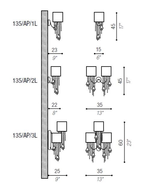 Available in a variety of finishes including polished chrome, polished gold, satin gold, and satin nickel, the Alice Wall lamps can be tailored to suit your personal style. The metal ceiling roses add a finishing touch to the design, ensuring a seamless integration into any interior scheme.