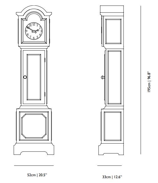 Designed in the Netherlands, this clock exudes sophistication and charm, making it the perfect statement piece for any interior. The Altdeutsche Clock stands tall at 195cm, with dimensions of 52cm x 33cm, and is finished in a captivating white hue that will complement any decor.