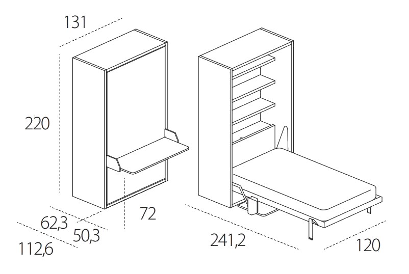 The Altea Book 120 Board is a sleek and modern transforming system that combines functionality and style in one compact design. Made in Italy with high-quality melamine materials, this single convertible bed is perfect for those who appreciate beautiful products that also serve a practical purpose. The innovative CF09 slatted bed base and large desk are both patented features that set this bed apart from others on the market.