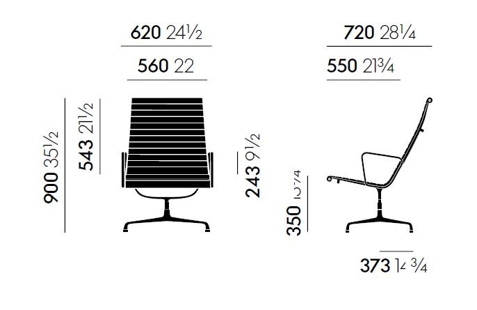 With its sleek design and high backrest, the Aluminum Chair Ea 116 offers exceptional support and style. The swivel seat adds a touch of functionality, while the option for upholstery in leather elevates the chair to a new level of sophistication. The four-spoke base ensures stability and durability, making it a versatile addition to any space.