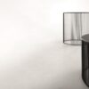 The Andra coffee table features a unique composition of vertical lines and a circular varnished metal rod that serves as a striking belt, available in both white and black finishes. The sleek metal structure is expertly paired with a tempered, frosted glass top, creating a harmonious blend of materials that is both elegant and refined.
