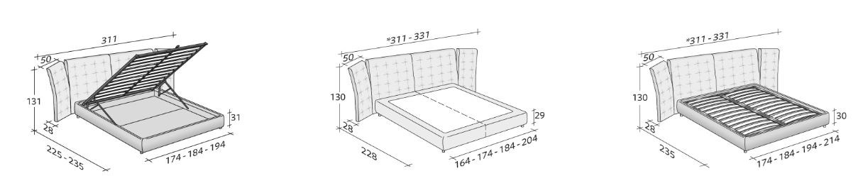 The standout feature of the Angle bed is its padded and stitched headboard, available with fully removable covers in luxurious fabric or leather. This bed is not only a statement piece in your bedroom but also a cozy retreat for a good night’s sleep. Choose from different base options such as the box-spring base Leonardo, fixed base with a 25 cm height, storage base, or a base with electrical movements for added convenience.