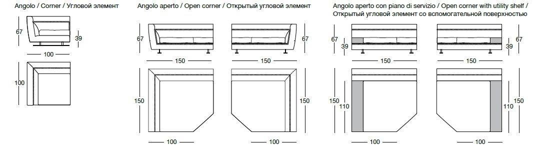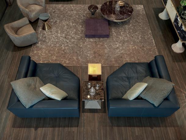 Ansel’s modular design offers versatility, allowing for various compositions to fit any space. The addition of a box-shaped utility shelf in onyx sheet with a dimmable internal light adds functionality and ambiance. Comfort is paramount with Ansel, as it boasts a high-resistance elastic band structure and plush seat cushions filled with sterilized goose down and multi-density polyurethane foam. The removable seat cushion upholstery ensures easy maintenance and longevity.