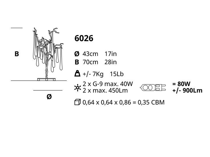 Illuminate your space with the halogen light of the Aqua 6026, offering direct lighting that creates a warm and inviting ambiance. Whether placed on a side table, console, or nightstand, this lamp will be a focal point in any room.