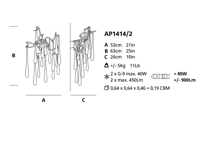 The Aqua Collection is inspired by nature’s beauty, capturing the essence of the natural world in a unique and elegant design. The bronze construction adds a touch of sophistication, while the floating glass pieces create a sense of lightness and airiness. The combination of materials and design choices makes the Aqua Ap1414/2 a versatile piece that complements any interior design concept.