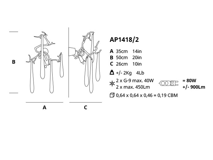 With its unique design and high-quality materials, the Aqua Ap1418/2 is sure to become a conversation piece in your home. Bring a touch of nature indoors with this exquisite wall lamp and elevate your space with its elegant charm. Request the price of the Aqua Ap1418/2 today and make it yours to enhance your interior design aesthetic.