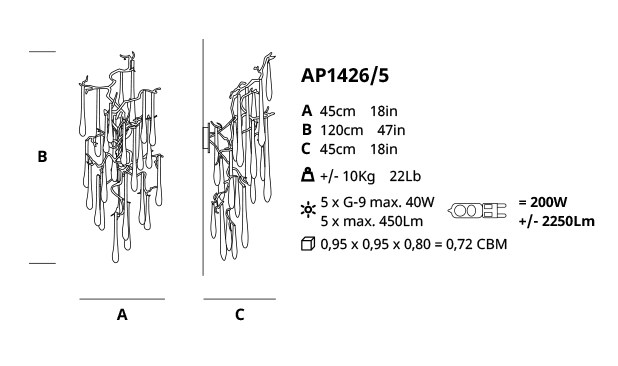 Transform your space with the Aqua Collection and bring a touch of nature into your home. Request the price of the Aqua Ap1426/5 wall lamp today and add a touch of luxury to your interior design. Experience the beauty and craftsmanship of Serip’s Aqua Collection and elevate your home décor to new heights.