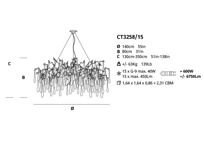 The Aqua Ct3258/15 pendant lamp is designed to provide direct light, creating a warm and inviting ambiance in any room. The intricate details of the lamp, from the trapped branches to the gliding glass drops, highlight the craftsmanship and artistry that went into making this piece.