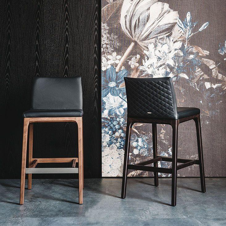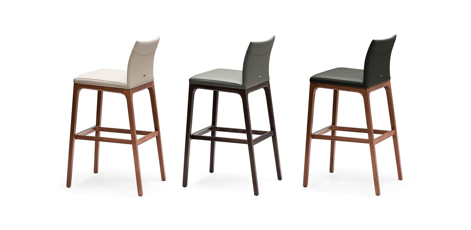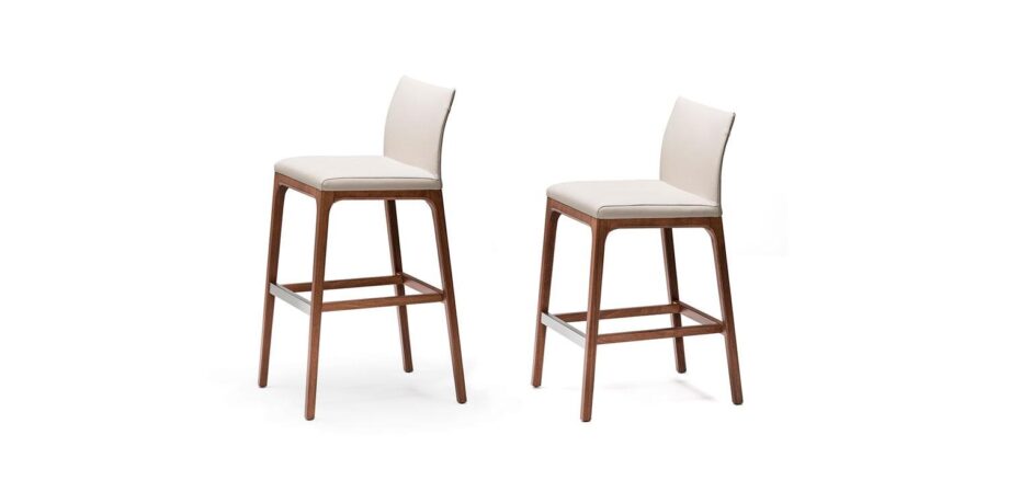 Crafted with a wooden base available in a range of finishes, including natural beech, Canaletto walnut, wenge, matte black, or white, the Arcadia bar chair exudes elegance and sophistication. The luxurious leather upholstery, available in a variety of colors and materials, adds a touch of opulence to any setting, while the plush cushioning ensures maximum comfort for hours of enjoyment.