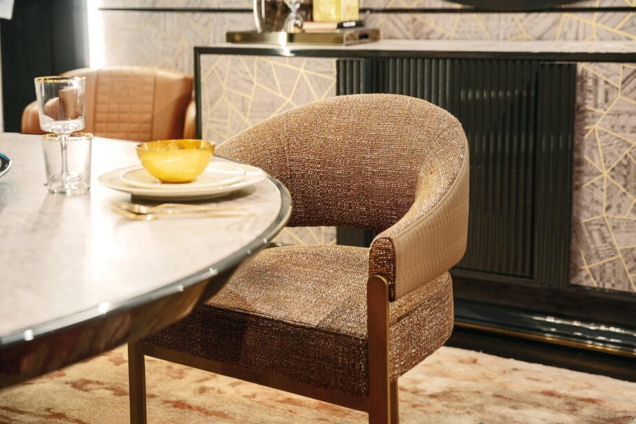 Available in a choice of Leather Beige/Gold or Leather Dark Brown/Titanium finishes, the Ariston chair is a versatile piece that can seamlessly fit into any design scheme, from minimalist to opulent. The intricate embroidery on the external part adds a touch of detail and sophistication, elevating this chair to a true work of art.