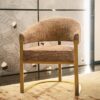 The Ariston chair is designed for comfort and elegance, with its padded seat and backrest providing a plush and supportive seating experience. The addition of armrests adds a touch of refinement, while the open back design gives it a modern and airy feel.