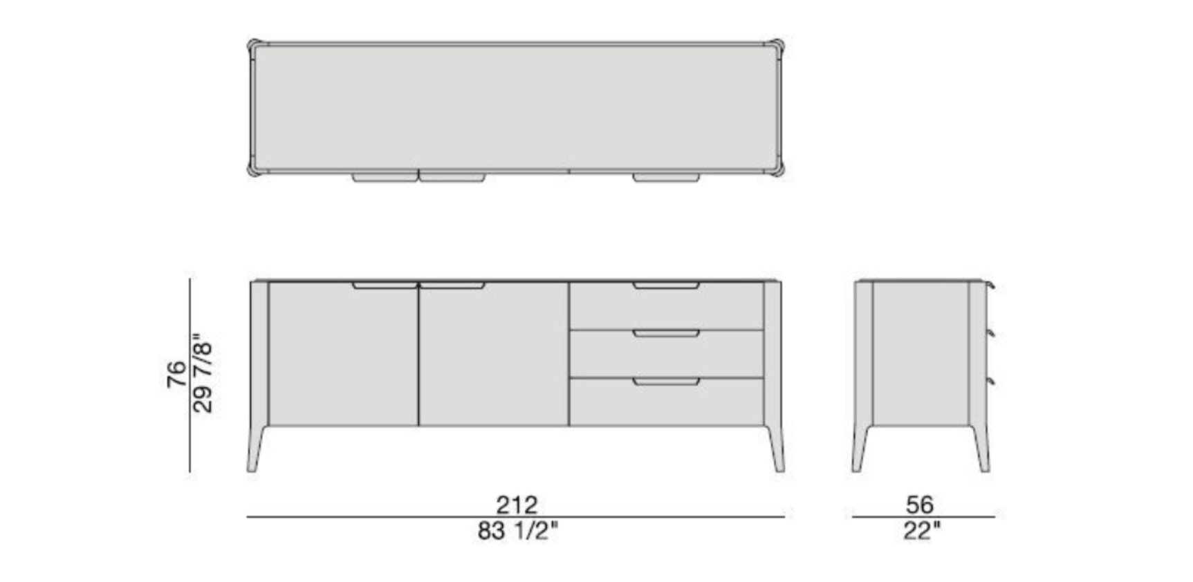 With its top available in marble, wood, or pearly glass backcoated, this sideboard is a versatile and stylish choice for your home. The two doors and three drawers provide ample storage space while maintaining a clean and minimalist aesthetic. The delicate closure ensures smooth operation, adding a touch of luxury to this functional piece.