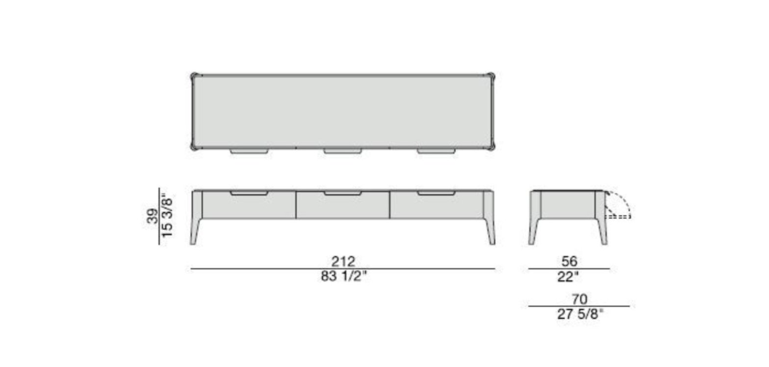Crafted from solid canaletta walnut wood, the Atlante TV stand exudes elegance and sophistication. The low height design adds a sleek touch to your entertainment area, while the two side drawers and central compartment with flap doors offer ample storage space for your media essentials.