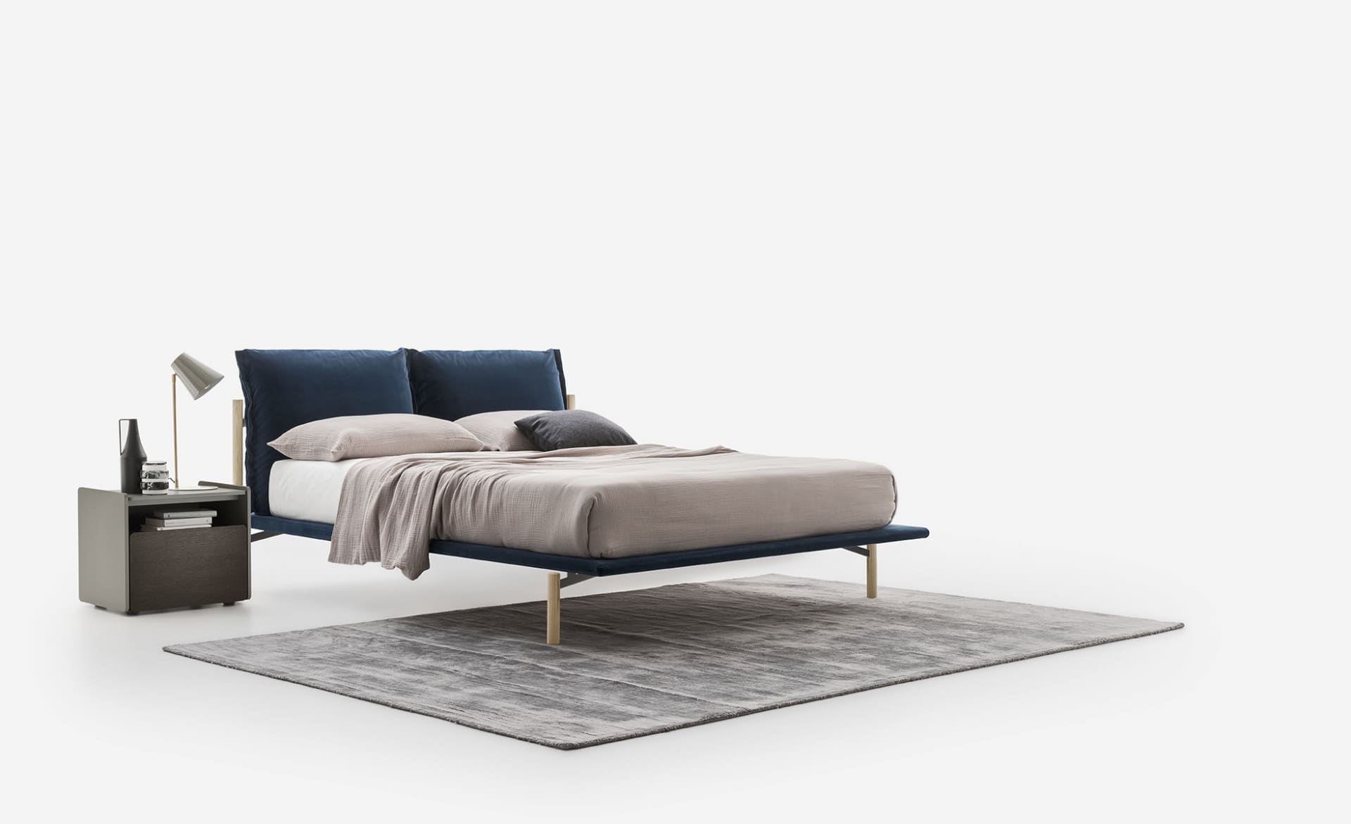 The Atlas bed, designed by the talented Enrico Cesana, represents an ideal fusion of modern style and unparalleled comfort. This designer bed immediately captivates with its unique construction: the unusual shape of its feet and their angled attachment to the bed platform create an intriguing floating effect, further emphasized by the elegant slim frame. Atlas is more than just a place to sleep; it’s a central interior element capable of transforming any bedroom. The bed’s upholstery adds softness and coziness, inviting you to a complete rest. Its wood and metal frame ensures durability and longevity, guaranteeing years of impeccable service. With its elegant and refined design, the Atlas bed will become the epitome of luxury and good taste in your bedroom. Discover the world of exquisite comfort and style that Atlas offers. Learn more details about the model and request a price to make this unique bed a part of your home.