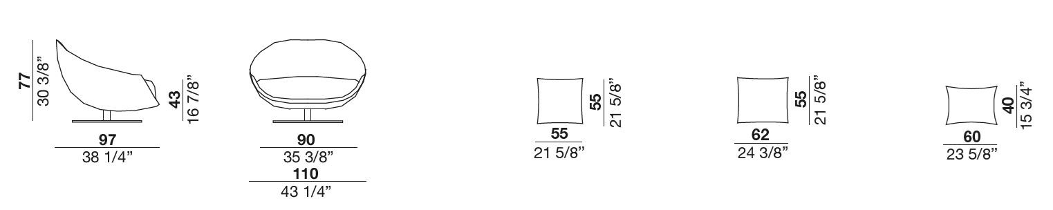 The Avì armchair boasts a sturdy metal structure embedded in cold-foamed polyurethane, providing durability and support. The seat cushions are filled with a luxurious feather and polyurethane blend, while the back cushions offer additional comfort with feather filling. The optional frame in polished chrome metal adds a touch of lightness and elegance to the armchair, making it a standout piece in any room.