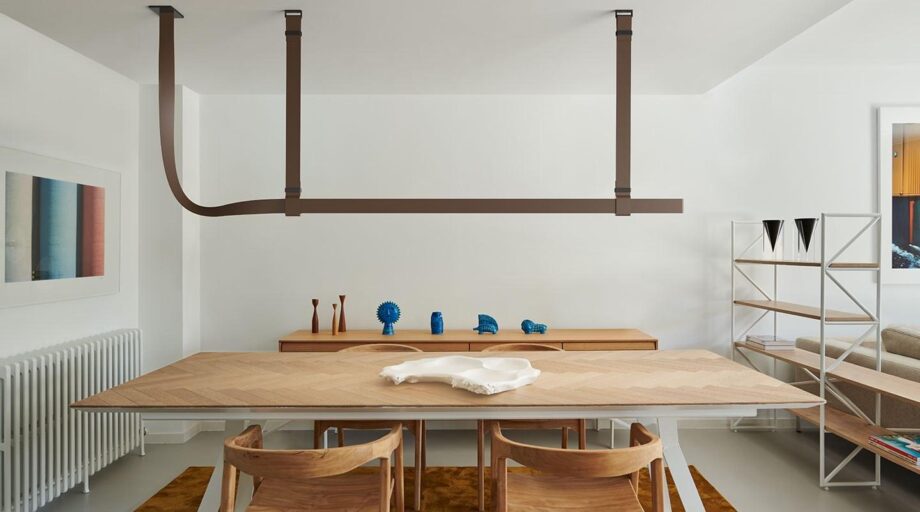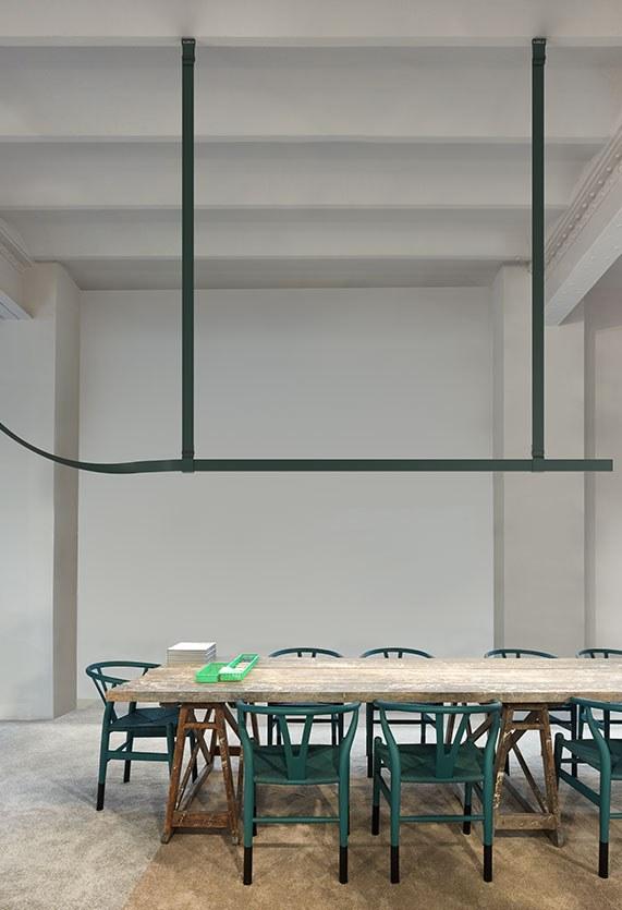 Designed for both private and public environments, this pendant lamp is not only a beautiful statement piece but also meets the highest standards of safety and cleanliness. Available in black, natural leather, and green finishes, the Belt pendant lamp effortlessly blends into any interior design scheme.