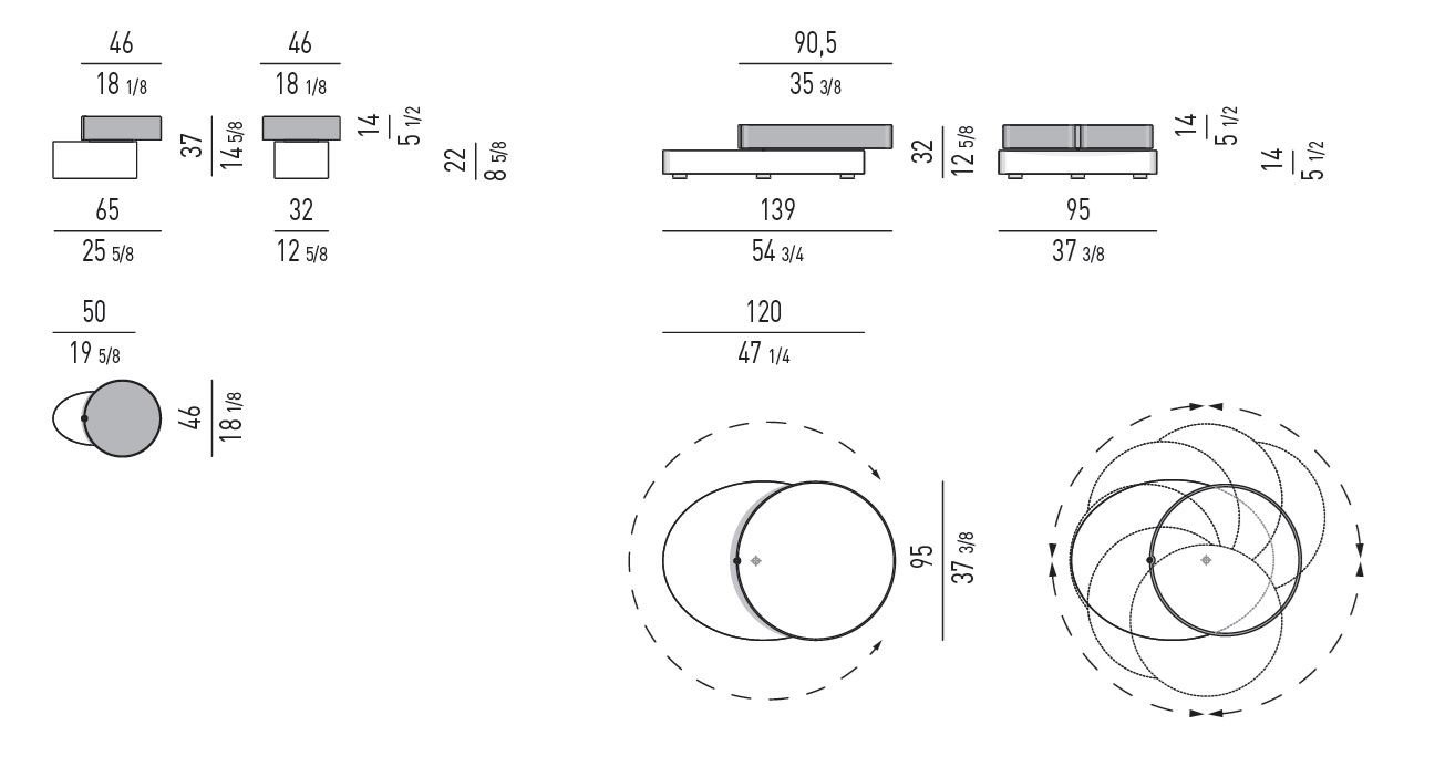 This modern coffee table stands proudly on your floor, serving as a functional yet stylish centerpiece. It offers two different sizes tailored to your specific needs. The larger coffee table measures 120×95 cm, featuring an elliptical base and a raised circular top. The top is equipped with a unique mechanism that allows it to turn a full 360 degrees and extend towards the sofa, making it adjustable to your convenience.