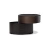 Benson comes in two exquisite combinations to cater to your aesthetic preferences. Opt for the glossy ebony base paired with an upper top in satin-finished bronze metal for a chic and sophisticated appeal. Alternatively, choose the base in glossy lacquered Moka paired with an upper top in glossy gold finish for a bold and luxurious statement.