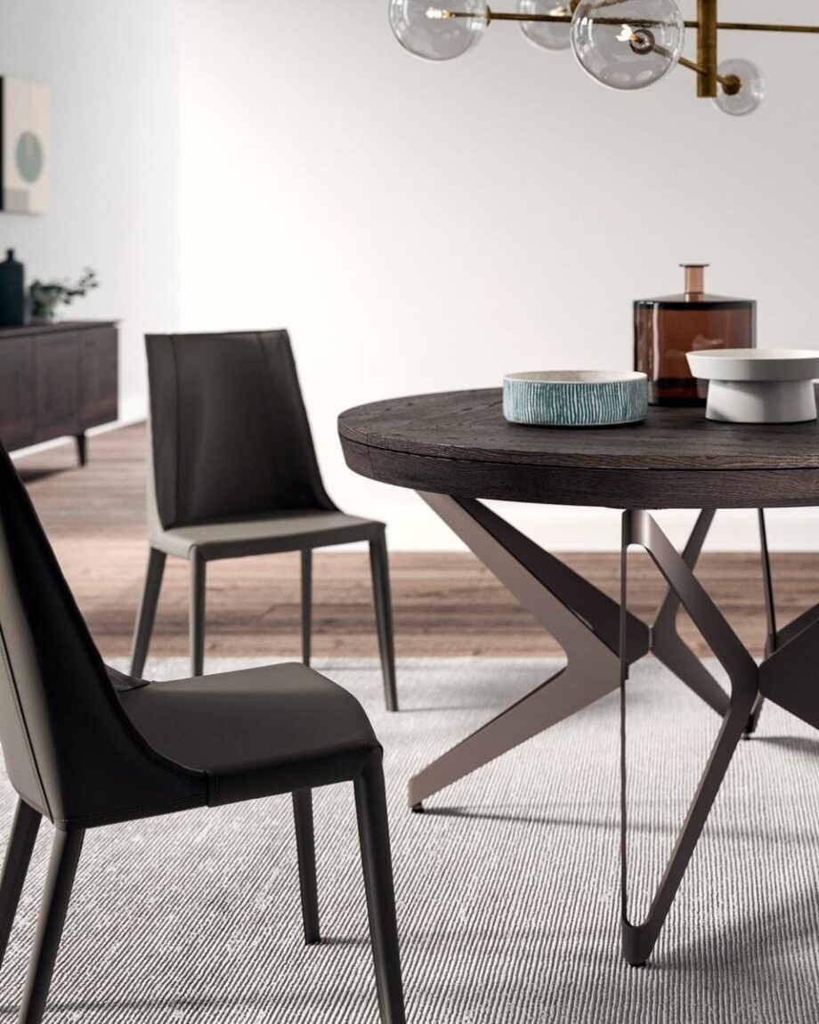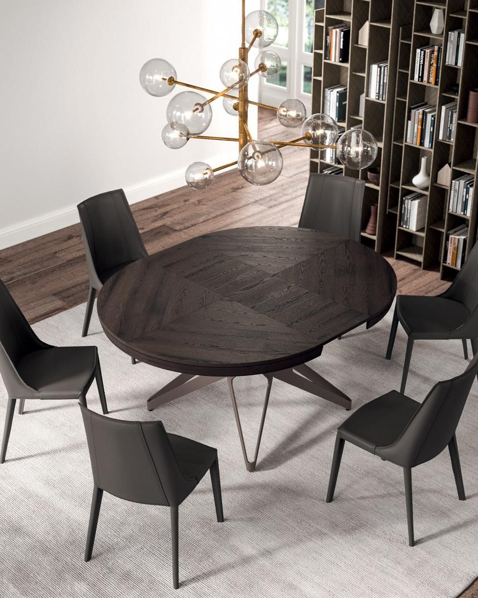 With its innovative extending mechanism, the Big Round table offers versatility and functionality. The unique design of the legs adds a stylish touch to the overall aesthetic, making it a statement piece in any space. The central trim detail enhances the beauty of the table, especially when fully extended.