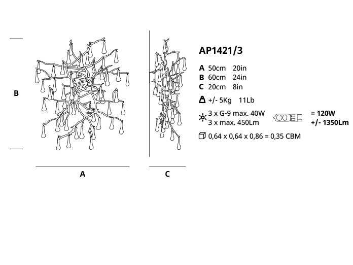 Transform your space with the enchanting allure of the Bijout AP1421/3 wall lamp. Contact us today to inquire about pricing and bring this stunning piece into your home. Experience the beauty and sophistication of this unique lighting fixture that will elevate your interior design to new heights.