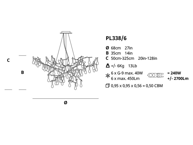 Ideal for creating an ambiance of warmth and charm, the Bijout Pl338/6 is designed to enhance your space with its unique blend of materials and lighting system. With halogen bulbs that provide direct light, this ceiling lamp offers both functionality and style, making it a versatile choice for various design schemes.