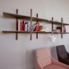 Inspired by industrial metal structures, the Biplan shelf features triangular wooden profiles that create a sense of movement and connection. Its minimal depth allows for the display of books and decorative items, making it both functional and stylish. The two suspended surfaces give the illusion of the shelf floating in mid-air, adding a touch of whimsy to your decor.