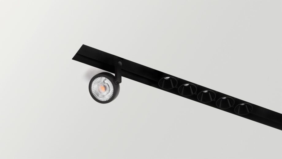 The Black Foster Six S spotlight is a versatile lighting fixture that seamlessly blends into your interior design, providing a perfect balance of form and function. Its unique design allows for the alternation of segments with light emission and without, creating a dynamic visual effect that is sure to impress.