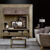 Crafted with precision and attention to detail, the Black Tie TV stand features a sleek brass finish and rich walnut veneer, making it a stylish addition to any modern interior. Its modular design allows for customization to suit your unique decor preferences, while the doors and drawers offer ample storage space to keep your entertainment area organized.