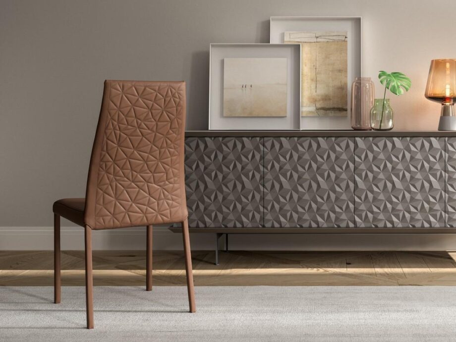 Introducing the Blitz Plus chair by Studio Ozeta, a stunning addition to your modern interior design. Crafted in Italy, this chair exudes elegance and sophistication with its eco-leather upholstery and metal edge design. Perfect for restaurant use, the Blitz Plus chair offers a comfortable seating experience with its padded upholstery.